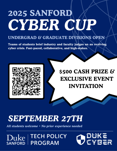 The second annual iteration of the Sanford Palo Alto Cyber Cup was held from October 23-24, 2021. As the university community took advantage of Duke Cyber Week to learn about cybersecurity and tech policy and its role in a wide array of disciplines and social debates, undergraduate and graduate students were invited to participate in a public policy cyberattack response simulation.
